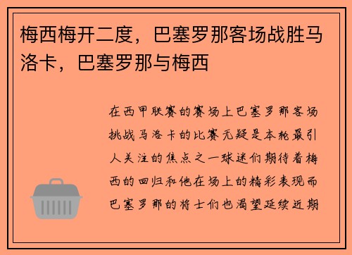 尽管如此,巴塞罗那的胜利已经势在必得。第78分钟,马洛卡门将的一次失误险些让对手抓住机会,但经过VAR的回放确认,裁判判罚进球无效。最终,巴塞罗那以2-0的比分结束了比赛,梅西的梅开二度为球队立下了汗马功劳。